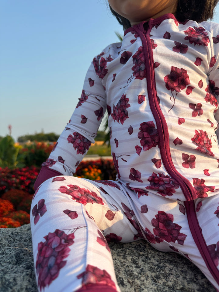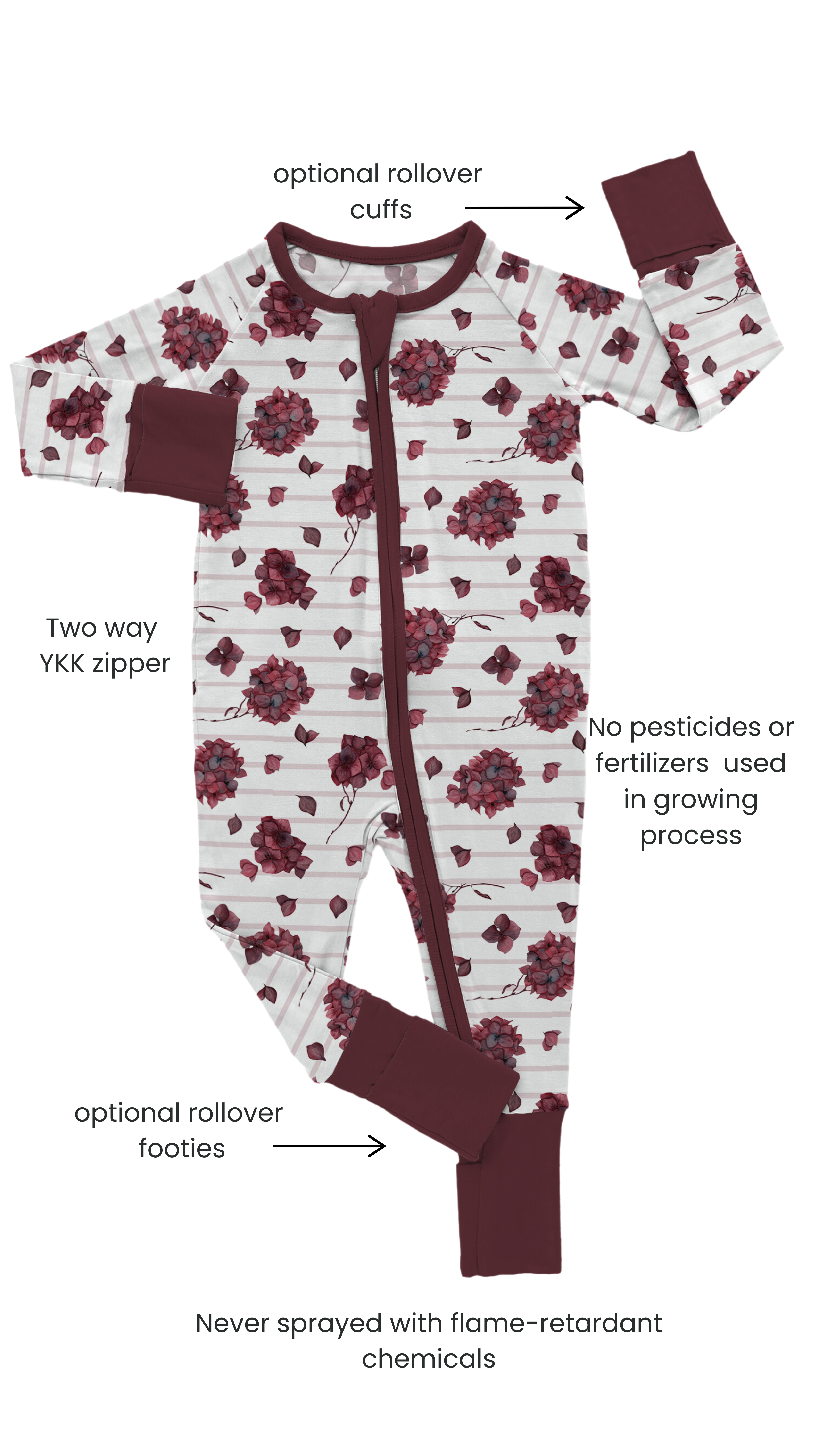 Crimson Whisper Hydrangeas Baby Butter Bamboo Footies