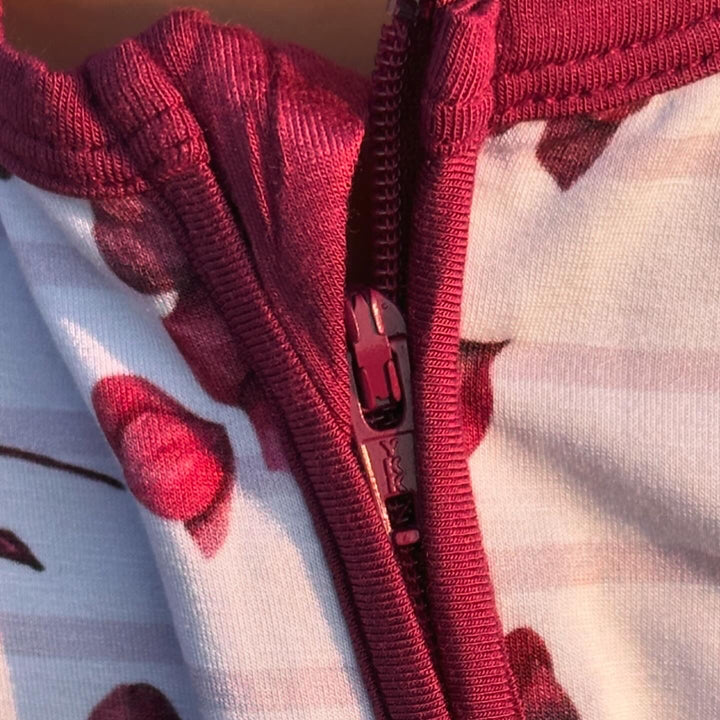 Step into a world of gentle elegance with our Crimson Whisper Hydrangeas Bamboo Footies, inspired by the delicate charm of blooming Hydrangeas. Made from the finest bamboo fabric, these footies are designed to be as soft and nurturing as a stroll through a garden in full bloom. With fold-over cuffs at the hands and feet, your little one will stay snug and cozy, whether they’re napping or exploring the world around them. The durable YKK zipper ensures smooth and safe use, offering peace of mind with every zip, thanks to its renowned strength and reliability.