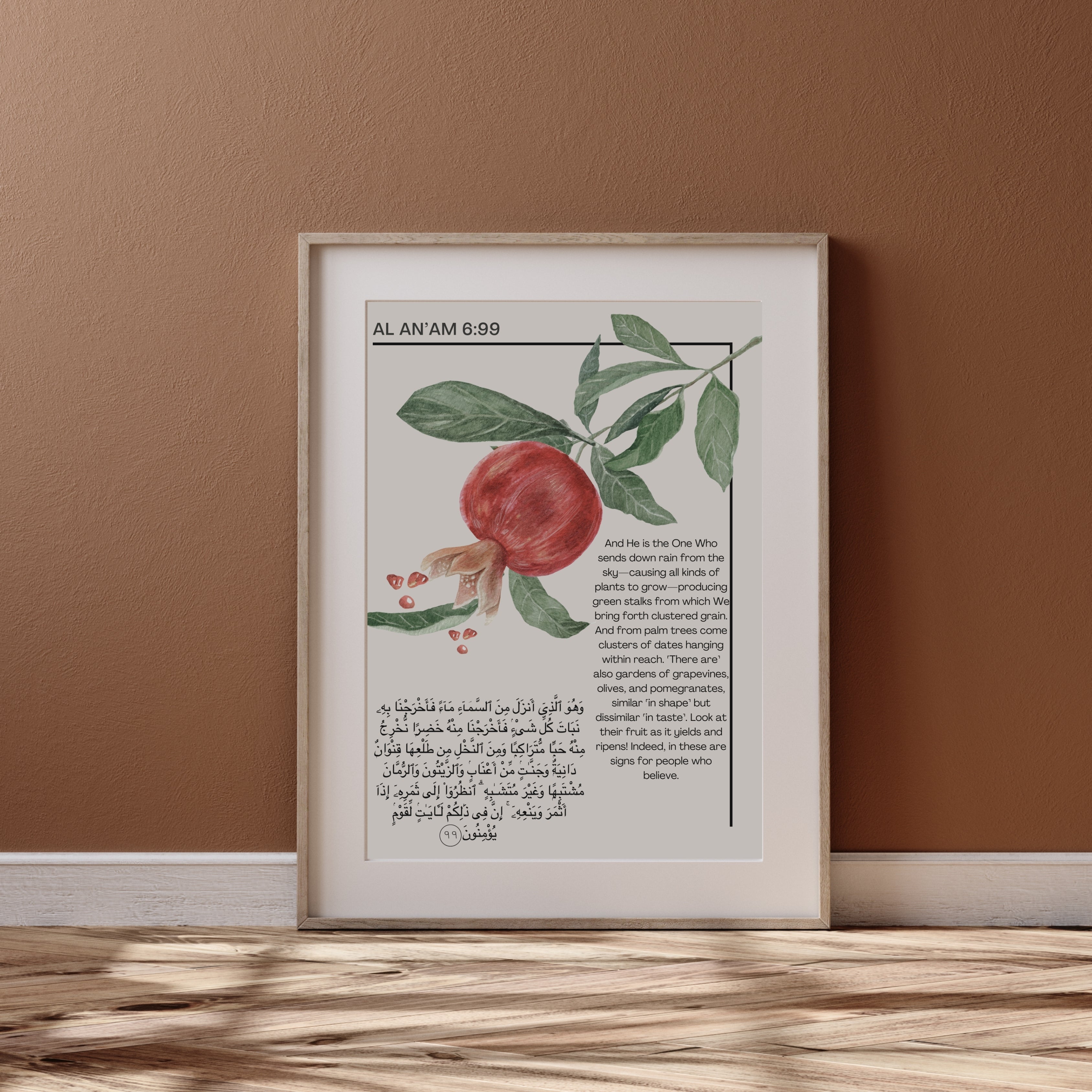 Discover the beauty and blessings of nature with our Fruits of the Qur’an wall art collection—a thoughtfully curated set of five hand-painted prints, inspired by the sacred fruits mentioned in the Qur’an. Each piece is lovingly illustrated to celebrate the divine gifts of pomegranate, olives, figs, grapes, and honey—symbols of sustenance, healing, and barakah.