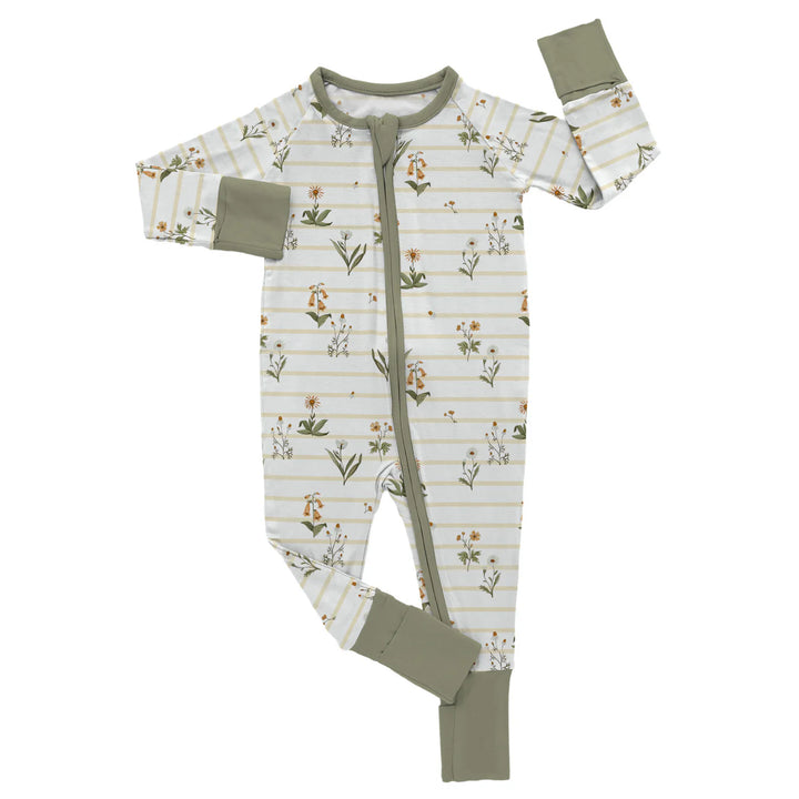 Let your little one be wrapped in the gentle beauty of nature with our Meadow’s Embrace Bamboo Footies, featuring a charming green-striped design adorned with delicate floral accents. Inspired by the peaceful embrace of a sunlit meadow, these buttery footies are crafted from luxuriously soft bamboo fabric, offering the perfect combination of breathability and warmth for your baby’s delicate skin.