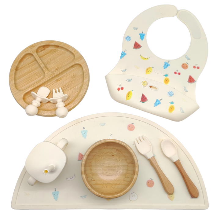 The set includes suction bowls that firmly grip the table, preventing slipping and reducing spills, so you can focus on the joy of feeding your baby. Durable, flexible, and easy to clean, each piece ensures a worry-free and enjoyable feeding experience. From first bites to favourite snacks, our feeding set is the perfect companion for every mealtime.