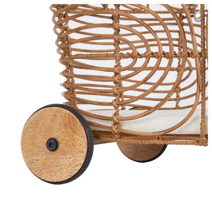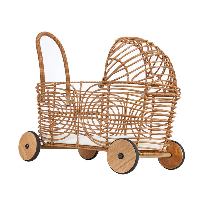 Step into a world of whimsy and wonder with our heirloom-quality rattan doll pram, a keepsake designed to spark the imagination and create cherished memories for years to come. Lovingly handcrafted, each pram is a testament to timeless craftsmanship, meticulously woven with durable poly rattan around a sturdy metal frame, ensuring it withstands countless adventures, from cozy nursery corners to enchanted garden strolls.