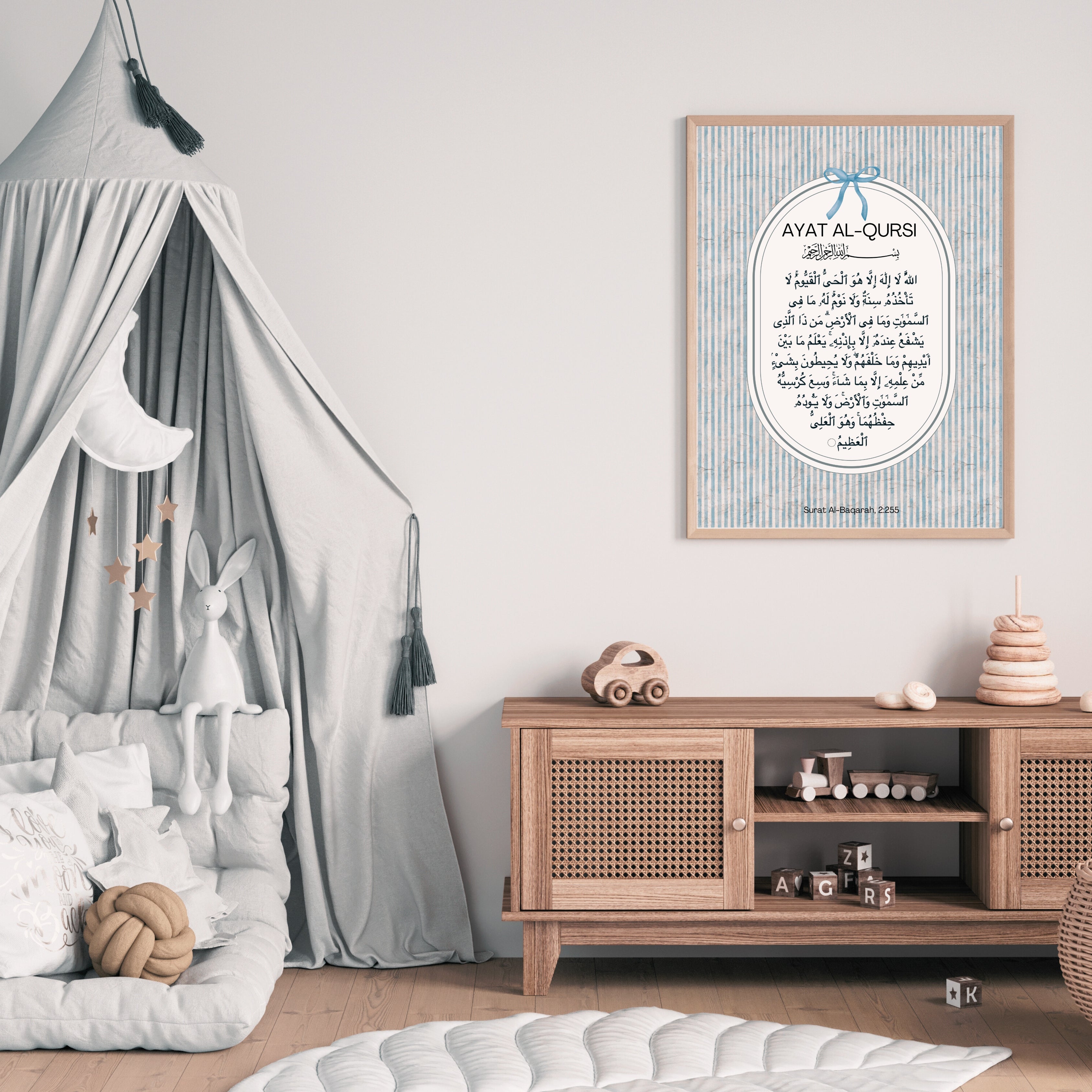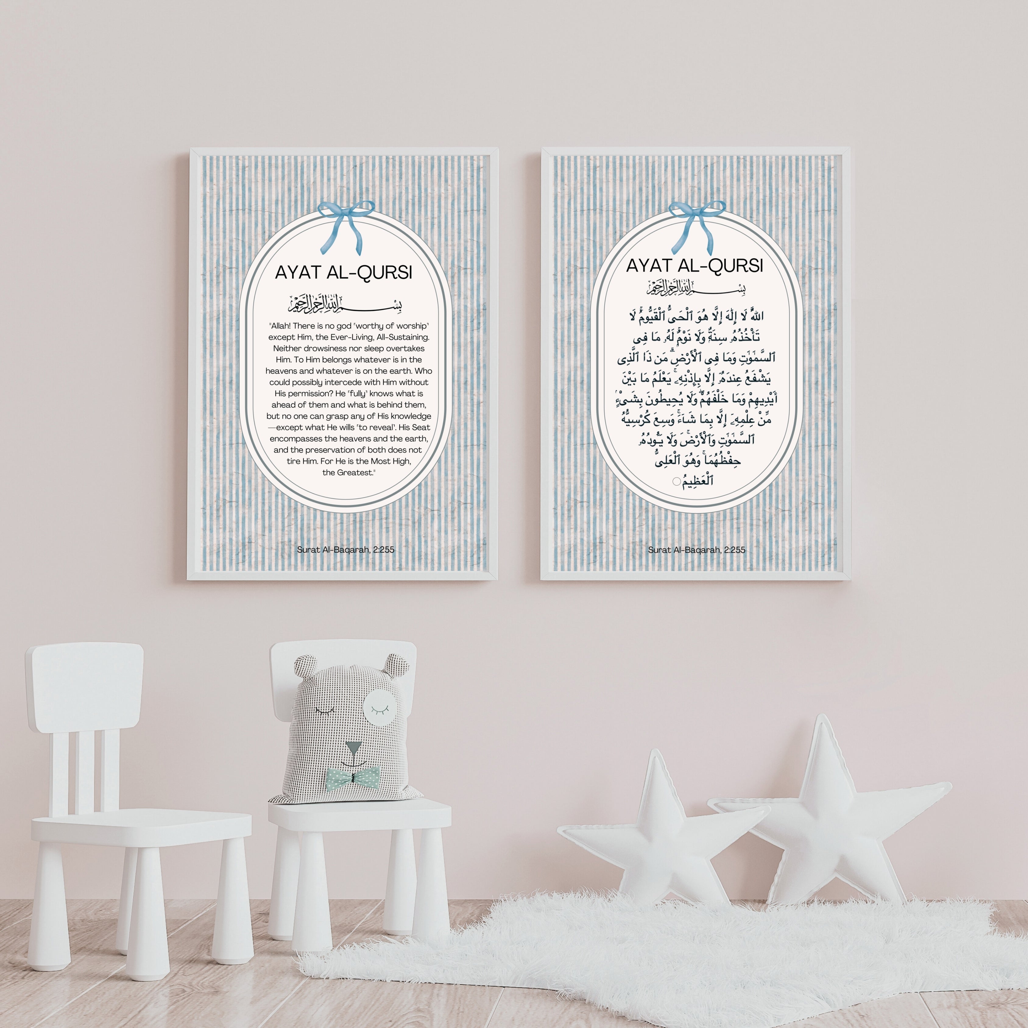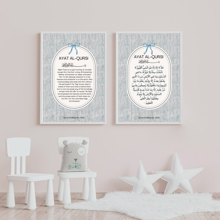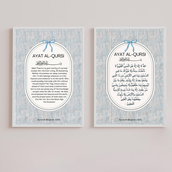 Surround your space with the powerful blessings of Ayat al-Kursi with this print set, featuring the verse in both Arabic and English. A reminder of protection, strength, and divine presence, this timeless set brings tranquility and faith into any home.