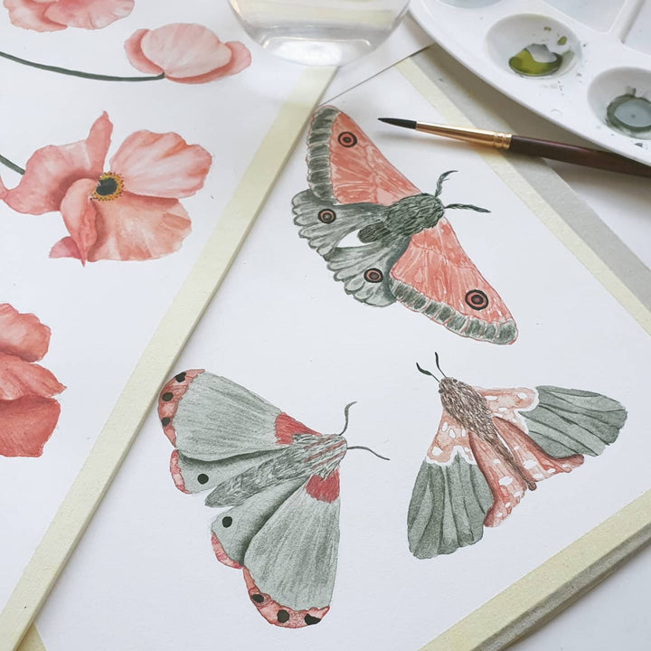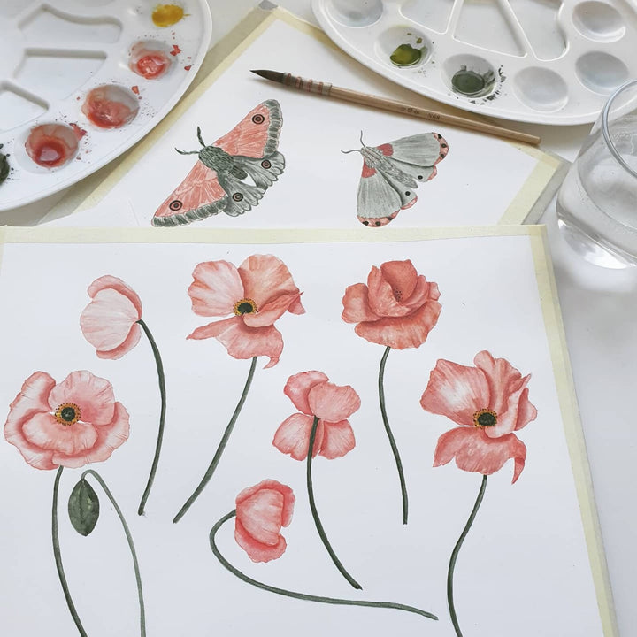 This hand-painted design blends the vibrant beauty of poppies, Palestine’s national flower, with soft stripes, symbolizing both strength and unity. The delicate flowers and graceful butterflies are set against a pastel pink and white striped background, creating a timeless and heartfelt print.