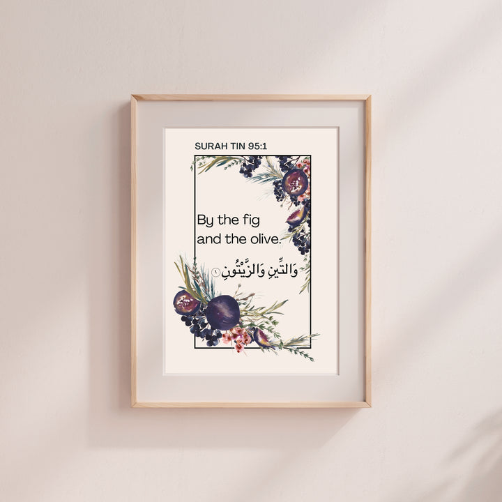 Inspired by the sacred mention of figs (At-Teen) in the Qur’an, this hand-painted print is a tribute to one of nature’s most cherished fruits—symbolizing wisdom, nourishment, and divine blessings. A reminder of Allah’s perfect creation, the fig has been celebrated for its beauty, richness, and spiritual significance for centuries.