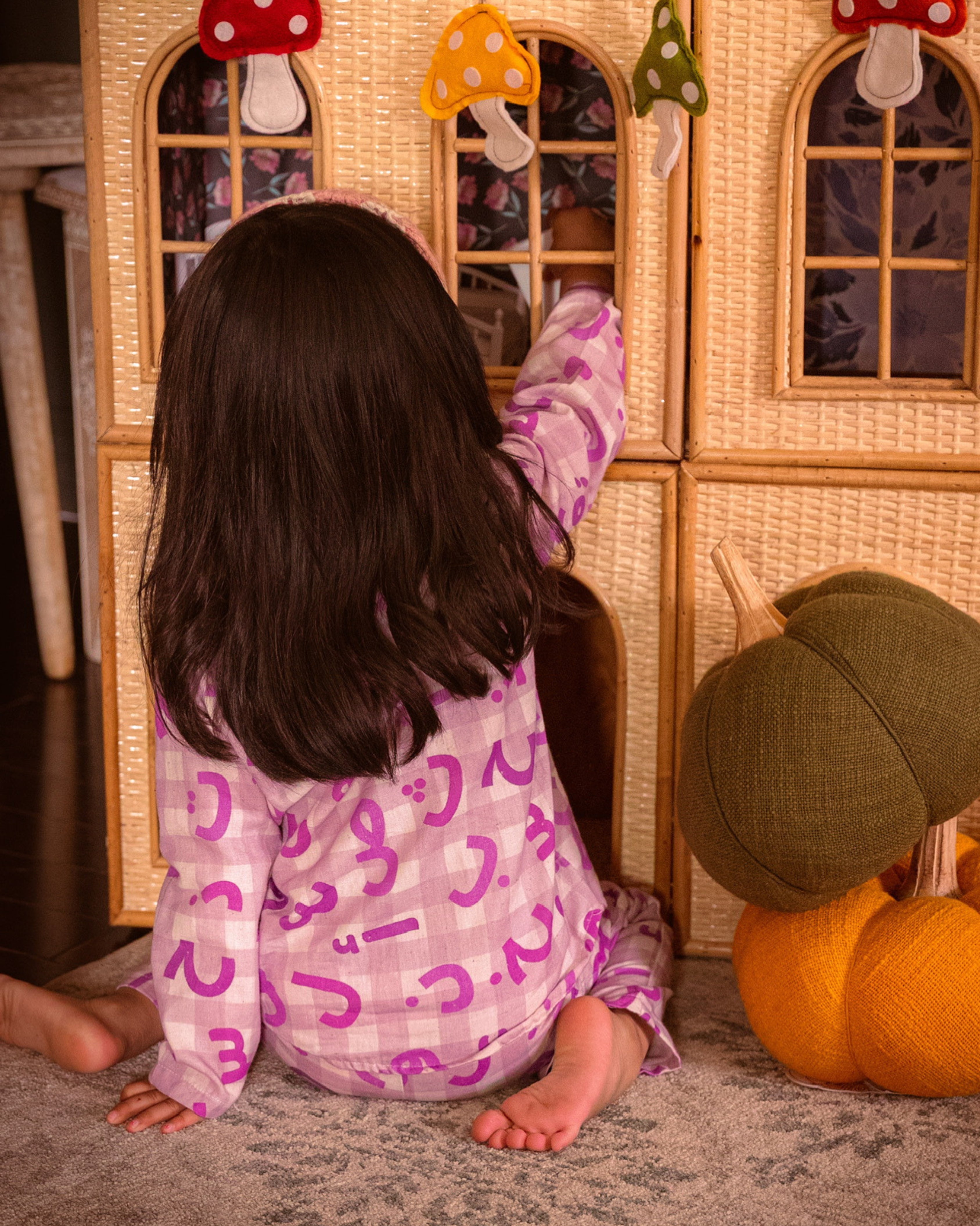 Where language becomes lullaby. Featuring delicate Arabic calligraphy in soft lavender hues, this dreamy print pays homage to the beauty of written word and the night skies of the East. A piece that whispers bedtime stories across generations.